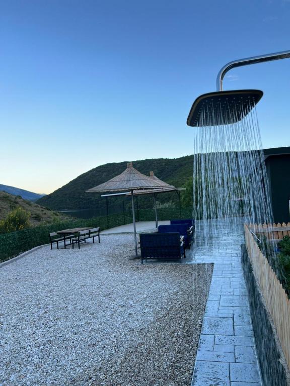 në Ksamil. Me pamje nga liqeni, ky strehim ofron një oborr spanjol. Prona është jo duhanpirëse dhe